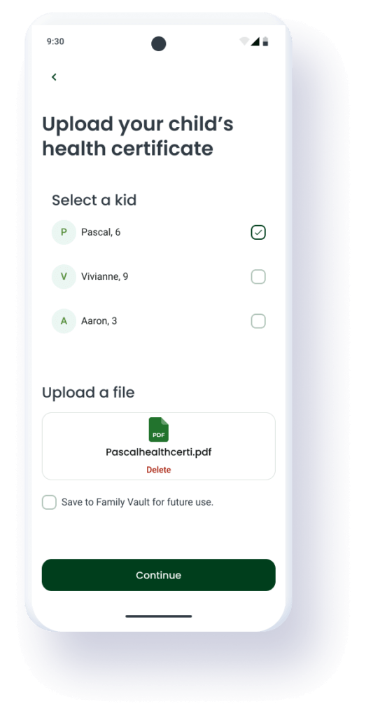 The Solution: Parents can upload medical certificates or ID cards once